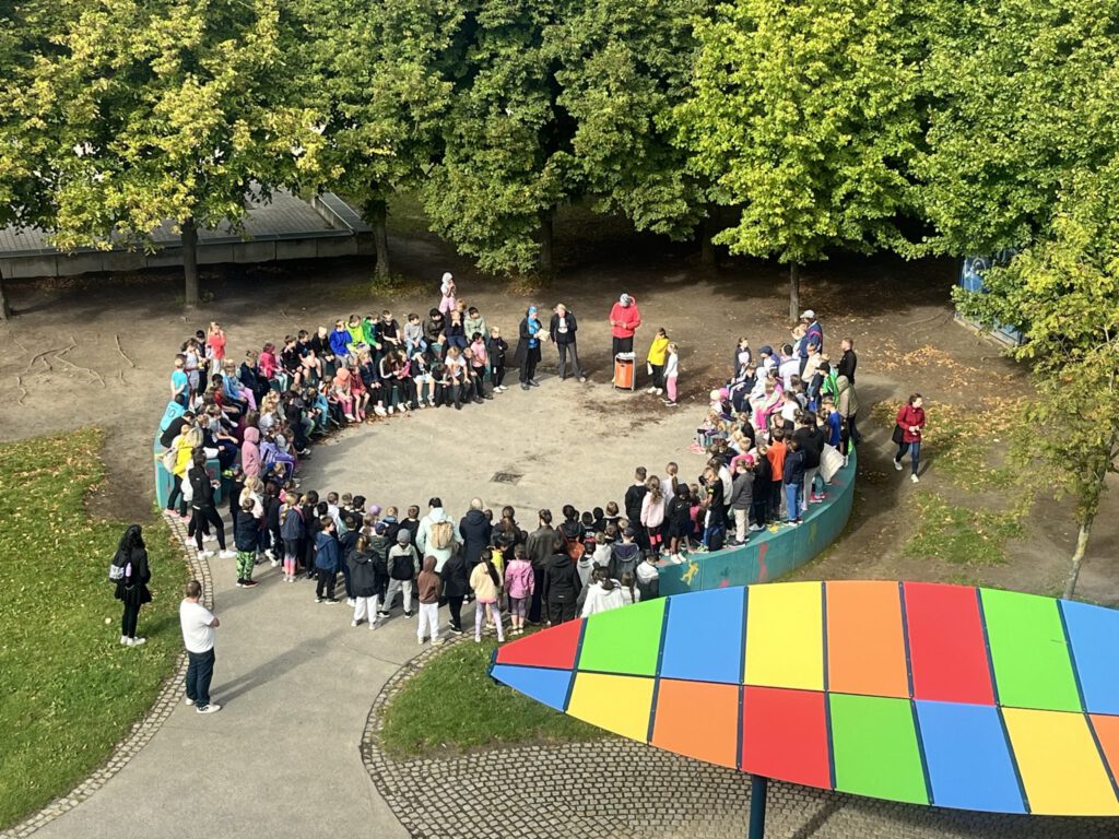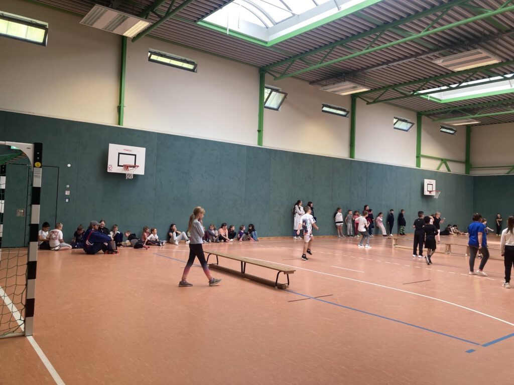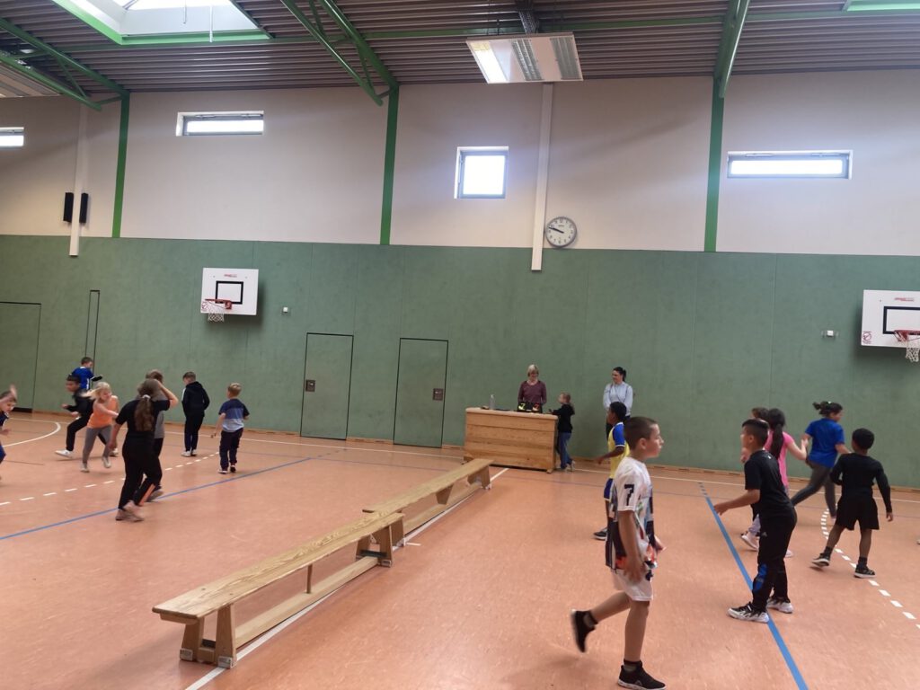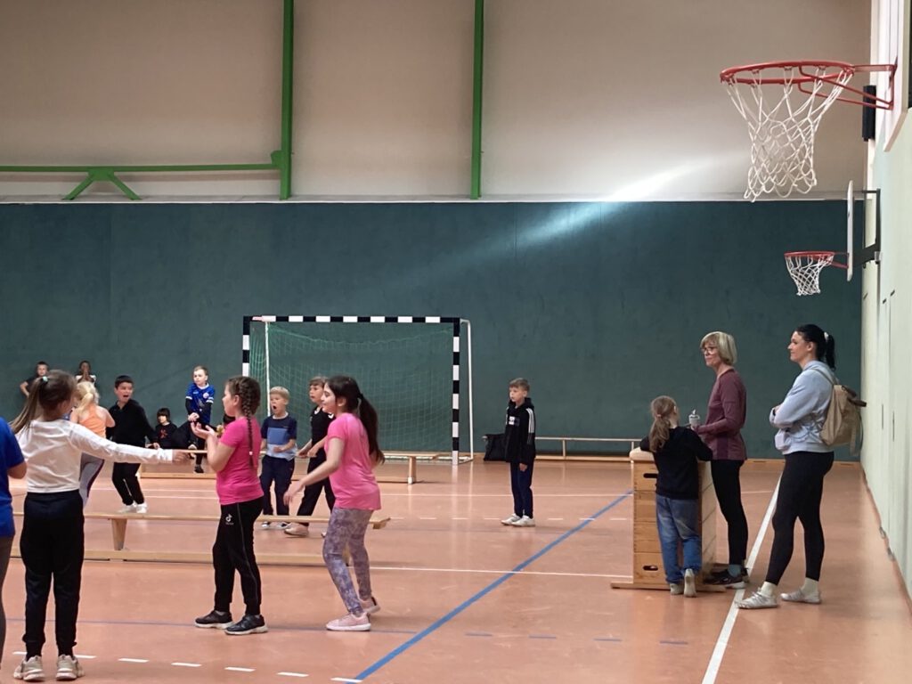 Auch in diesem Schuljahr starteten wir wieder sportlich mit unserem Ballsportfest. Nach der Erwärmung rund um den Sportplatz gab es noch viele erwärmende Sportübungen durch unsere Sportlehrer und die Kinder machten die Bewegungen mit Freude nach. Anschließend ging es für die Klassen zwei bis vier mit den Ballspielen Fußball, Zweifelderball, Ball über die Schnur und Brennball los. Auch unsere Ersties kamen zum Zuschauen und staunten. Die Jahrgangsstufen zeigten bei den Wettkämpfen vollen Eifer, aber auch Spaß, Teamgeist und Fairness. Dabei erbrachten die Kinder auch tolle Ergebnisse die wir bei der anschließenden Siegerehrung feierten.