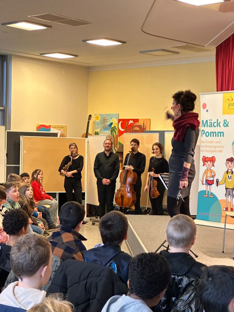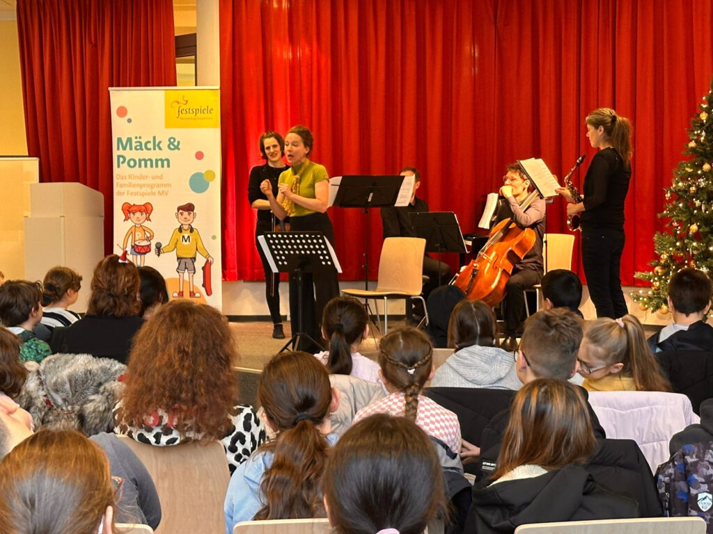 Die Festspiele Mecklenburg-Vorpommern waren an unserer Grundschule Schmarl zu Gast und haben am 9. Dezember ein außergewöhnliches Konzert zum „Kleinen Prinzen“ im Atrium aufgeführt. Die Künstlerinnen und Künstler kamen dafür direkt zu uns an die Schule und ermöglichten unseren Schülerinnen und Schülern spannende Einblicke in die vielfältige Welt der Musik, die Kindern sonst oft verborgen bleibt.
